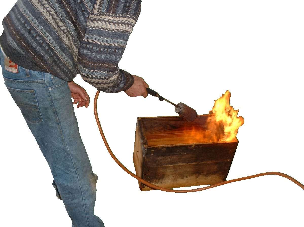 Nous passions systématiquement à la flamme, toutes les caisses vides et disponibles en début de saison. Dans notre cas, environ un millier tous les ans. Les ruches et ruchettes qui en avaient besoin passaient ensuite dans un bain d’huile de lin chauffée.
