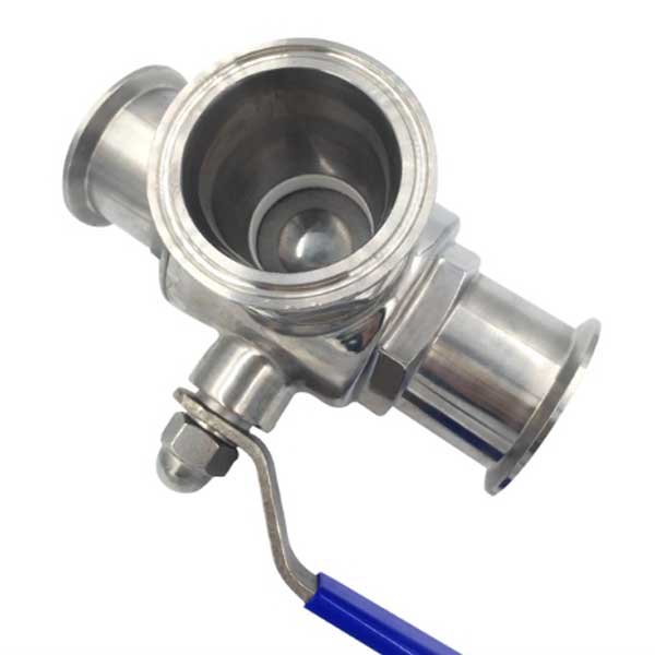 Vanne inox 3 voies T, 2″ (51mm) pour raccord TriClamp norme ISO 2852