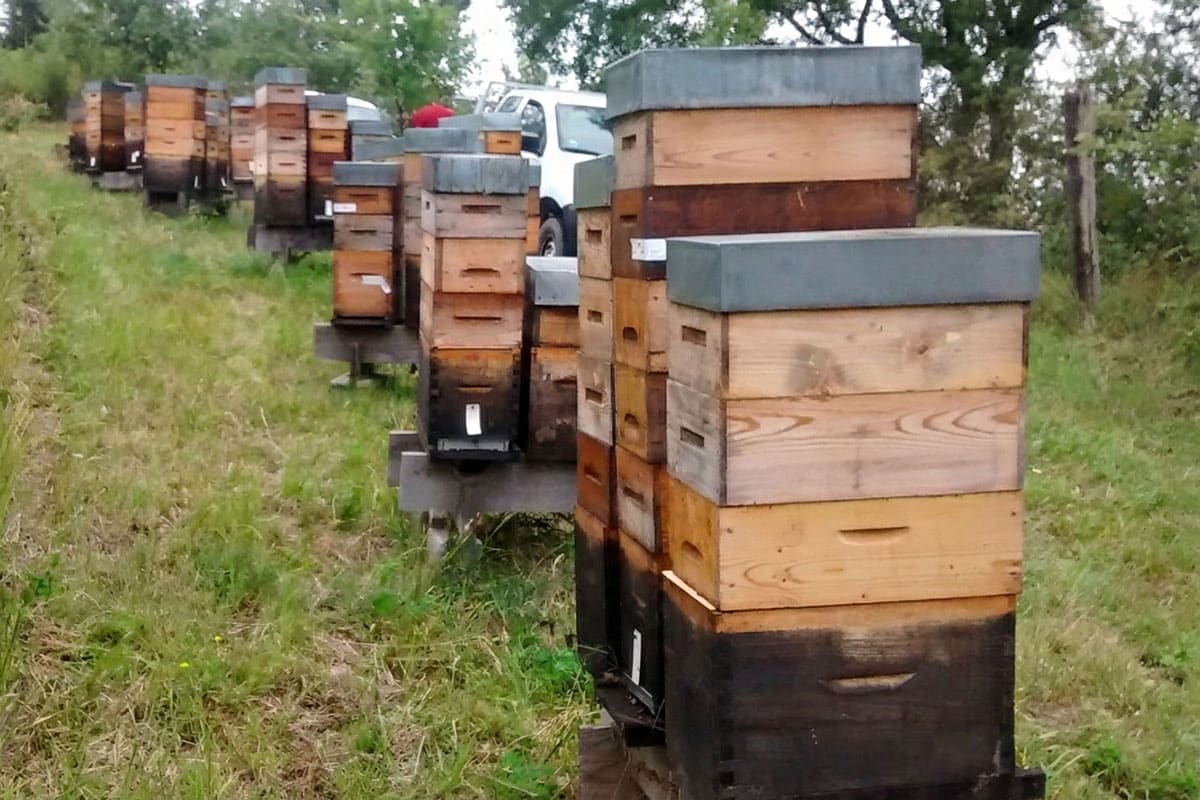 Cette approche, novatrice voire un peu téméraire à l’époque, s’est révélée payante. En effet, le format 6 cadres offre une grande souplesse d’organisation, ce qui a largement contribué à l’efficacité de notre exploitation. Les ruchettes 6 cadres sont avant tout destinées à la production d’essaims. Mais elles participent largement à notre production de miels toutes fleurs.