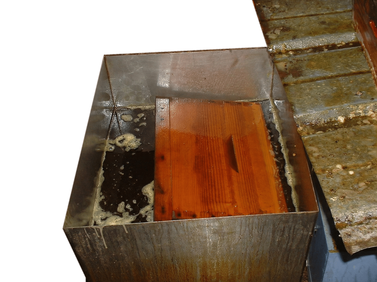 L’oléothermie est un procédé qui consiste à chauffer une huile végétale – l’huile de lin – à température modérée (entre 100°C et 150°C) pour améliorer sa pénétration dans le bois. Ce traitement renforce la résistance du bois et prolonge la durée de vie des ruches. Nous estimons qu’après 3 passages, le bois devient quasiment imputrescible.